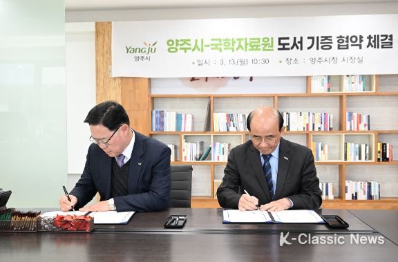 K-Classic News 최지은 기자 | 양주시가 지난 13일 시청 상황실에서 양주시의 인문 독서문화 발전을 위해 국학자료원과 학술도서 기증 협약식을 체결했다.