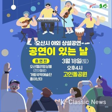 K-Classic News 최지은 기자 | 오산시는 오는 18일 토요일 오후 4시 고인돌공원에서 야외 상설공연인 ‘공연이 있는 날’을 개최한다고 밝혔다.