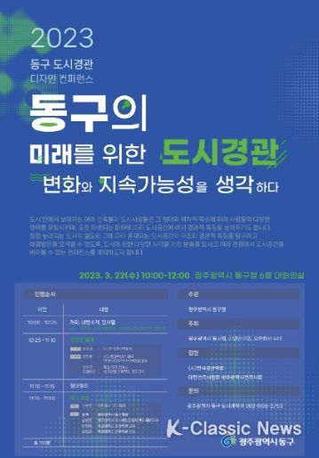 K-Classic News 최지은 기자 | 광주 동구는 오는 22일 ‘동구의 미래를 위한 도시경관, 변화와 지속가능성을 생각하다’는 주제로 ‘동구 도시경관 디자인 컨퍼런스’를 개최한다고 밝혔다.