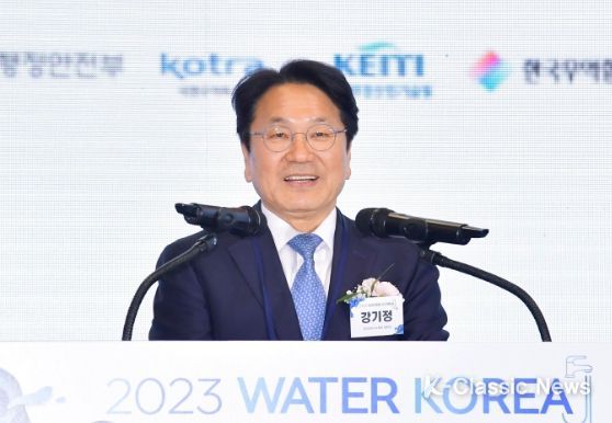 K-Classic News 최지은 기자 | 한국상하수도협회장인 강기정 광주광역시장은 21일 경기도 고양시 일산 킨텍스에서 열린 ‘2023 국제물산업박람회(WATER KOREA)’ 개막식에 참석해 “우리의 미래, 물에 투자해야 한다. 그렇지 않고서는 미래를 열어 갈 수 없다”며 물의 가치를 강조했다.
