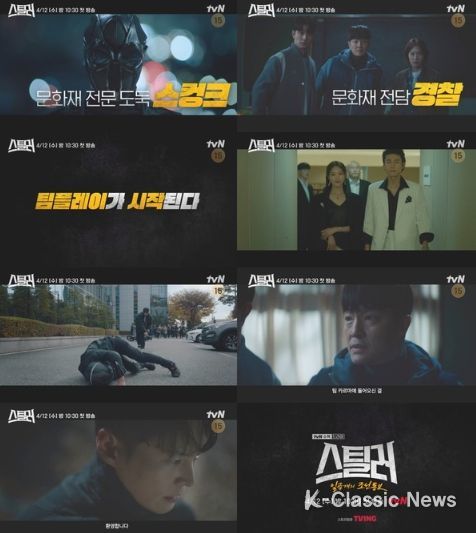 베일에 싸인 문화재 도둑 스컹크와 비공식 문화재 환수팀 ‘카르마’가 뭉쳐 법이 심판하지 못하는 자들을 상대로 펼치는 케이퍼 코믹 액션 tvN 새 수목드라마 ‘스틸러: 일곱 개의 조선통보’는 오는 4월 12일(수) 밤 10시 30분에 첫 방송된다.