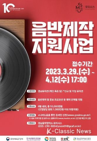 K-Classic News 최지은 기자 | 경남도는 경남 뮤지션의 활동 기반을 마련하고 지역 대중음악산업 활성화를 위해 음반제작 지원사업과 도내공연 지원사업을 마련하고, 사업 참여자를 모집한다.