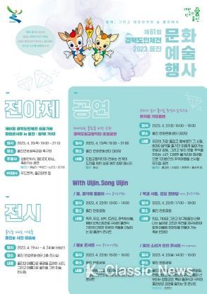 K-Classic News 김성연 기자 | 울진군은 오는 4월 21일에서 24일까지 개최되는 제61회 경북도민체전 기간 동안 울진을 방문하는 선수단과 관광객을 위해 풍성한 문화예술행사를 개최한다.