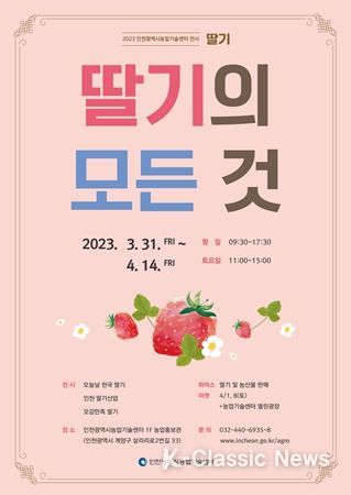 K-Classic News 김성연 기자 | 인천광역시는 오는 31일부터 인천농업기술센터 1층 농업홍보관에서 ‘딸기’전시를 개최한다고 밝혔다.