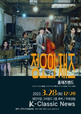 K-Classic News 김성연 기자 | 포항문화재단은 오는 28일 체인지업그라운드(포항창조경제혁신센터) 2층 로비에서 찾아가는 음악회 ‘정오의 재즈’를 개최한다고 밝혔다.