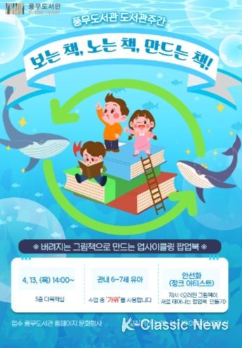 K-Classic News 최지은 기자 | 김포시 풍무도서관은 제59회 도서관 주간을 맞아 4월 13일 오후 2시부터 ‘보는 책, 노는 책, 만드는 책!’ 강좌를 연다. 이번 강좌는 정크아티스트, 팝업 놀이터 대표인 안선화 작가와 함께한다.