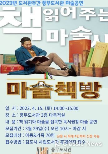 K-Classic News 최지은 기자 | 김포시 풍무도서관은 제59회 도서관 주간을 맞아 4월 15일 오후 2시, 풍무도서관 3층 다목적실에서 마술공연 ‘책 읽어주는 마술사의 마술 책방’을 운영한다.