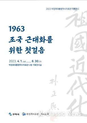 K-Classic News 최지은 기자 | 구미시는 4월 1일부터 6월 30일까지 박정희대통령역사자료관 2층 기획전시실에서 박정희 대통령 취임 60주년이 되는 2023 계묘년(癸卯年)을 맞아 '1963, 조국 근대화를 위한 첫걸음'을 주제로 기획전시를 가진다.