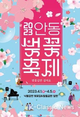 K-Classic News 최지은 기자 | 안동시와 한국정신문화재단은 4월 1일부터 5일까지 닷새간, 낙동강변 벚꽃길과 탈춤공원 일원에서 2023 안동 벚꽃축제를 개최한다.