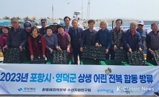 K-Classic News 최지은 기자 | 포항시는 29일 영덕군과 함께 포항시 송라면 지경리, 영덕군 남정면 부경리 경계 지점에서 어린 전복 10만 마리를 합동 방류했다.
