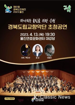 K-Classic News 김성연 기자 | 울진군은 오는 4월 13일 울진연호문화센터 대강당에서 제61회 경북도민체전 성공개최 분위기 고조를 위하여 경북도립교향악단 초청공연을 무료로 개최한다.