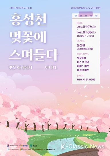 K-Classic News 이호민 기자 | 홍성군이 4월 ‘홍성천’에서 문화적 실험‘홍성천 벚꽃에 스며들다’와‘피크닉 데이’프리마켓을 개최한다.