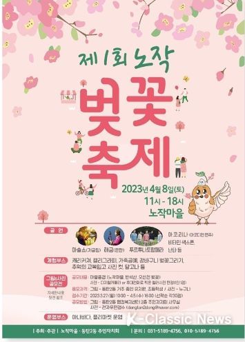 K-Classic News 최지은 기자 | 화성시 노작마을과 동탄2동 주민자치회가 8일 화성시 반송동 노작마을 곳곳에서 ‘제1회 노작 벚꽃축제’를 개최한다.