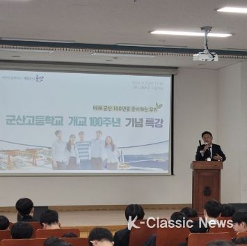 K-Classic News 최지은 기자 | 강임준 군산시장이 5일 모교인 군산고등학교를 방문해 ‘미래 100년을 준비하는 우리’라는 주제로 동기부여 강연을 펼쳤다.