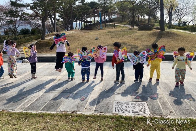 오감하동은 매주 다른 주제로 다양한 작품을 만드는데 첫 시간인 지난 토요일은 ‘하동의 봄을 찾아서’라는 주제로 아이들과 부모가 직접 나비를 만든 후 아이들이 등에 매고 하동공원에서 나비가 돼 자연을 누비는 시간을 가졌다.