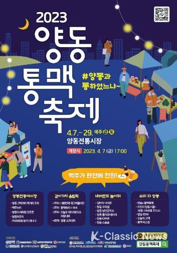K-Classic News 최지은 기자 | “#양동과_통해_보겠느냐!”는 주제로 열리는 '양동통맥축제'가 7일 오후 5시에 개장식을 갖고 4월 한달간 매주 금, 토 16~22시까지 야시장 형태로 운영된다.