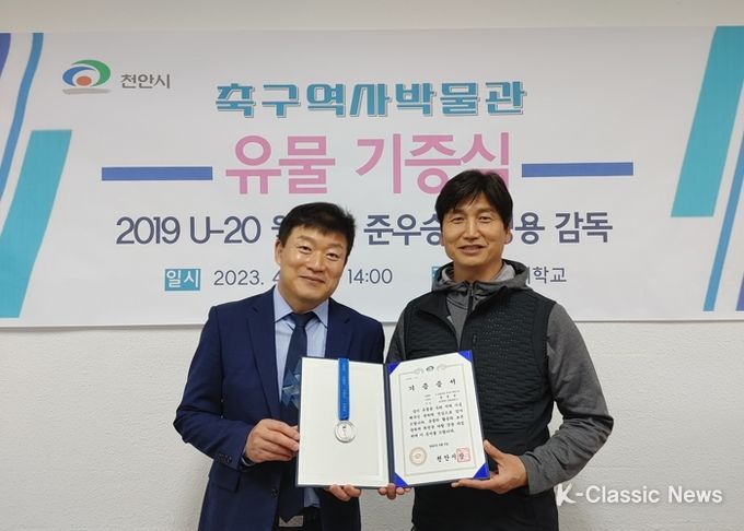 K-Classic News 이호민 기자 | 천안시는 지난 5일 경북 경산시 소재 경일대학교 정정용 교수 연구실에서 축구역사박물관 건립을 위한 유물기증식을 개최했다고 7일 밝혔다.
