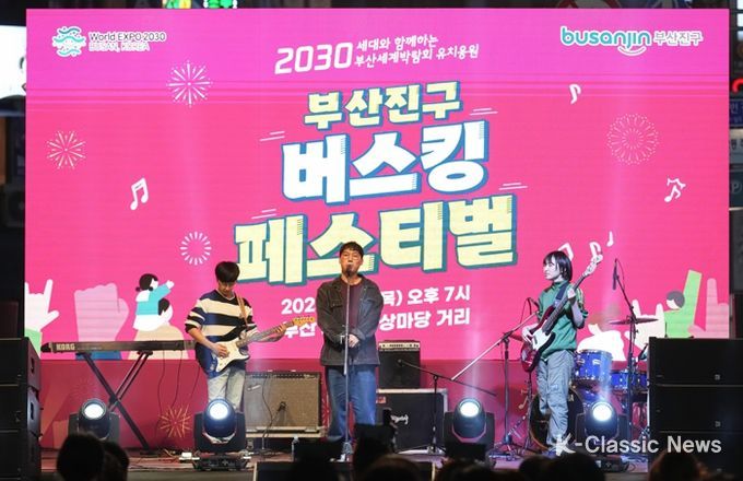 K-Classic News 이호민 기자 | 부산 부산진구는 4월 6일 19시 서면 상상마당 거리에서 2030세대와 함께하는 2030부산세계박람회 유치 응원 “부산진구 버스킹 페스티벌”이 관람객들로 대성황을 이루었다고 밝혔다.