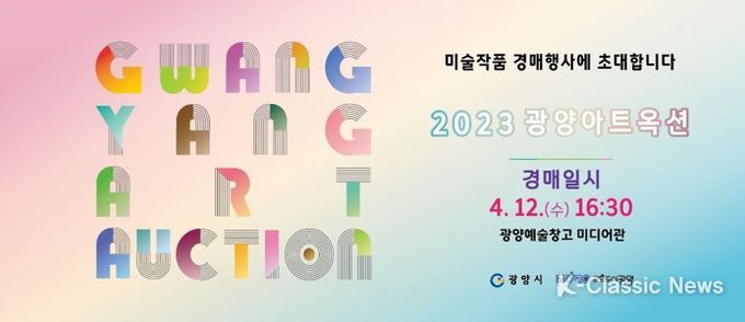K-Classic News 이호민 기자 | 광양시는 오는 12일부터 16일까지 광양예술창고에서 ‘광주․전남․경남’ 활동 중견작가 14명의 작품을 전시하고 경매행사도 함께 진행하는 ‘2023 광양아트옥션’을 개최한다고 7일 밝혔다.