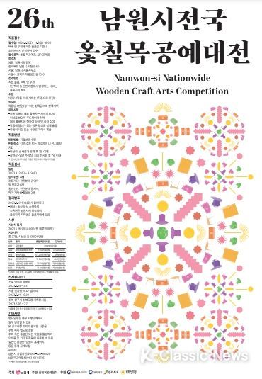 K-Classic News 이호민 기자 | 남원시(주최)와 남원목공예협회(주관)가 ‘제26회 남원시 전국 옻칠 목공예대전’을 빛낼 목공예 작품들을 4월 7일부터 9일까지 3일간 접수한다.