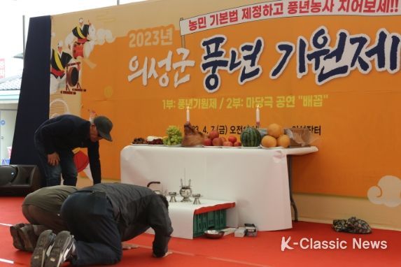 K-Classic News 최지은 기자 | 의성군은 지난 7일 의성읍 장터에서 기관, 단체장, 농업인 등 100여명이 참석한 가운데 의성군 농업인이 건강하고 평안함 속에 대풍을 기원하는 2023년 의성 농업인 풍년기원제를 개최했다.