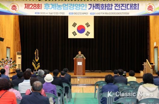 K-Classic News 최지은 기자 | (사)한국후계농업경영인 태안군연합회가 지난 7일 군민체육관에서 가족화합 전진대회를 열고 후계농업인 가족 간 화합과 우의를 다졌다.