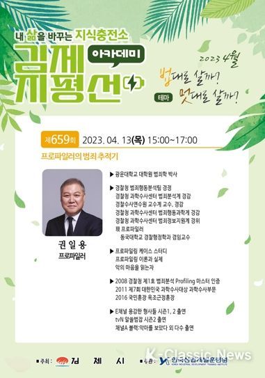 K-Classic News 이호민 기자 | 김제시는 4월 13일 제659회 지평선아카데미를 맞이하여 국내 1호 프로파일러인 권일용 교수를 초청하여 ‘프로파일러의 범죄 추적기’라는 주제로 강연을 진행한다.