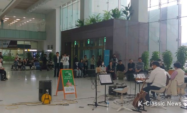 공연은 청주시 직원의 재능기부를 통해 진행됐으며, 기타선율과 아름다운 노래소리와 함께 '옛시인의 노래', '기도' 등 옛 향수를 자극하는 음악으로 관객들에게 다가갔다.