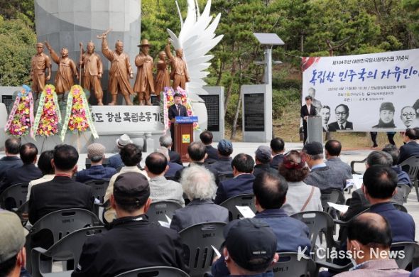 K-Classic News 최지은 기자 | 전라남도는 11일 무안 항일독립운동기념탑에서 ‘제104주년 대한민국 임시정부수립 기념식’을 개최하고 민주공화국으로 시작한 대한민국의 뿌리와 선열의 정신을 되새겼다.