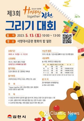 K-Classic News 최지은 기자 | 김천시는 4월 10일부터 5월 10일까지 제3회 'Happy together 김천'운동 그리기 대회 참가 신청을 받는다.