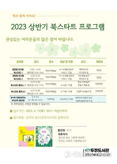 K-Classic News 이호민 기자 | 천안시 두정도서관은 ‘2023년 북스타트 상반기 프로그램’을 시작한다고 12일 밝혔다.