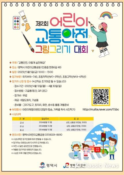 K-Classic News 최지은 기자 | 평택도시공사가 수탁 운영중인 평택시 어린이교통공원이 제101회 어린이날을 맞아 제2회 교통안전 그림그리기 대회를 개최한다고 밝혔다.