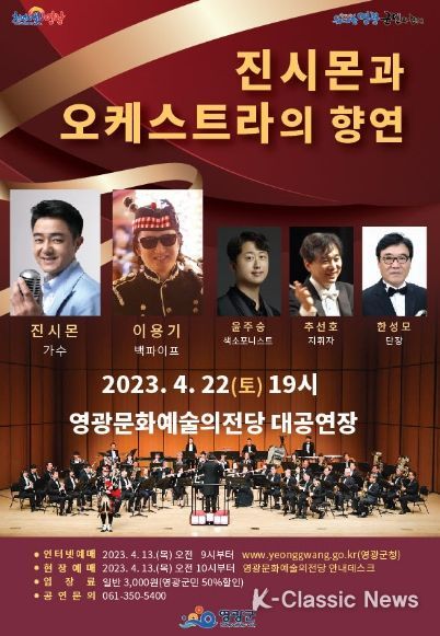 K-Classic News 최지은 기자 | 영광군은 오는 4월 22일 오후 7시에 영광문화예술의전당 대공연장에서 ‘진시몬과 오케스트라의 향연’공연을 펼친다.