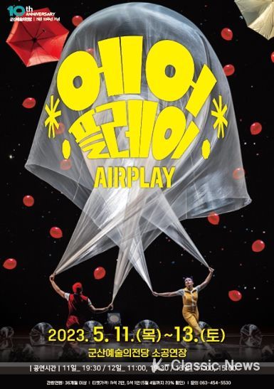 군산시는 넌버벌 퍼포먼스 그룹 아크로부포스(ACROBUFFOS)의 대표작 에어플레이(Air Play)가 28개국 투어를 거치고 국내 첫 내한공연으로 군산예술의전당 무대에 선다고 밝혔다.