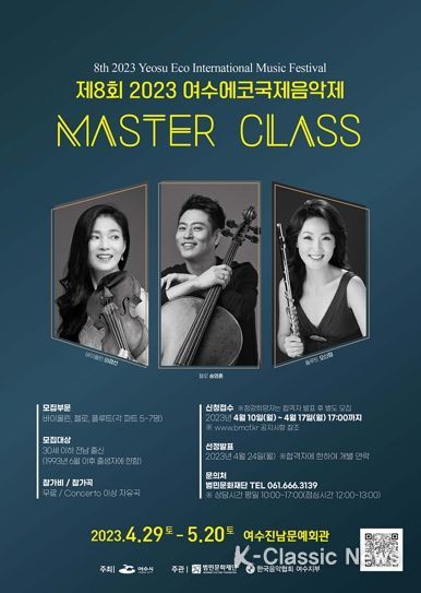 시 관계자는 “올해 여수에코국제음악제에서 처음 선보이는 마스터클래스를 시작으로 클래식계 발전에 이바지할 지역 인재 발굴과 양성에 힘쓰겠다”고 전했다.