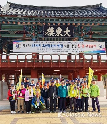 K-Classic News 최지은 기자 | 지난 4월 1일 서울에서 출발해 5월 23일 일본 동경까지 53일간 총 1,158km 를 걷는 ‘제9차 21세기 조선통신사 옛길 한·일 우정 걷기’행렬단 40여 명이 11일 안동에 도착했다.