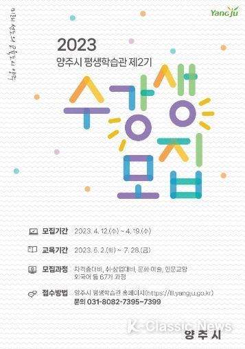 K-Classic News 최지은 기자 | 양주시는 19일까지 2023년 제2기 평생학습관 프로그램 수강생을 모집한다.