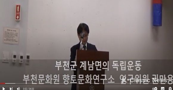 K-Classic News 최지은 기자 | 부천문화원과 부천학연구소는 부천의 역사와 문화를 연구하는 부천의 대표적 지역학 연구기관이다. 특히, 부천학연구소는 매년 부천문화원과 부천시의 지원을 받아 역사·문학·지명학·한문학을 전공하는 전문연구자가 부천학 연구를 위해 매달 열리는 정례회의, 연간 학술대회 개최, 연간 발간되는 연구서 집필 등에 참여하고 있다. 그 결과 부천의 역사·문화·지명·민속 등을 주제로 연구서를 발간 중에 있으며, 2019년에는 3.1운동 100주년을 맞아 부천지역의 만세운동 중 대표적 항일운동인 계남면사무소 습격사건을 『부천지역의 역사와 지명연구』에 특별히 소개했다. 일명 ‘계남면사무소 습격사건’은 전국적 3.1운동의 물결이 이어지는 중인 3월 24일 부천군 계남면 중리(현재 심곡동과 중동 일대)의 주민들이 일제의 강압적인 식민지배와 수탈정책에 항거하여 만세운동을 전개하던 중 계남면사무소를 습격하여 비품과 서류를 불태워버린 사건이다.