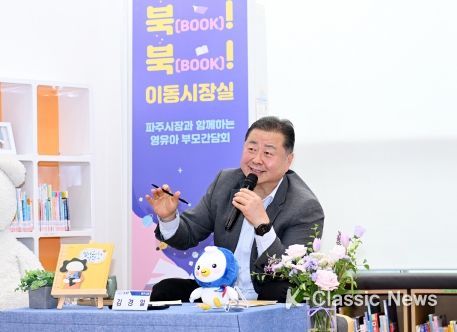 K-Classic News 최지은 기자 | 김경일 파주시장이 12일 ‘제1회 도서관의 날’을 맞아 교하도서관에서 화목한 이동시장실을 열고 영유아 부모 및 시민들과 만남을 가졌다.