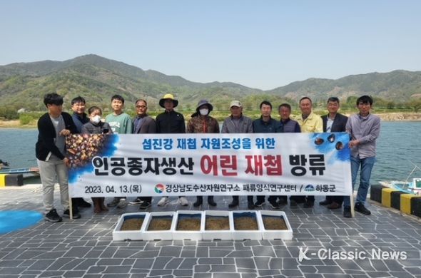 K-Classic News 최지은 기자 | 경상남도수산자원연구소 패류양식연구센터는 4월 13일 하동군 섬진강일원에 센터에서 직접 생산한 어린 재첩 40만 마리를 하동군, 하동군수협 및 지역어업인 등 15여 명이 참석한 가운데 방류했다.