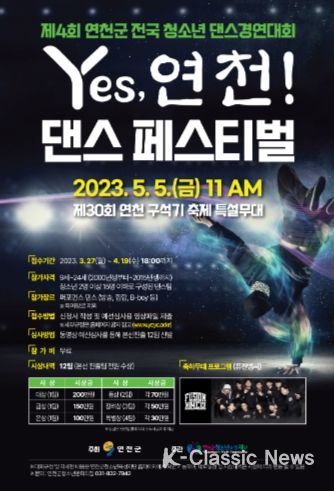K-Classic News 최지은 기자 | 연천군청소년육성재단은 오는 19일까지 ‘제4회 연천군 전국 청소년 댄스경연대회’ 참가자를 모집한다고 밝혔다.