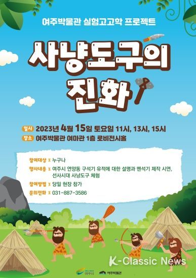 K-Classic News 최지은 기자 | 여주시 여주박물관은 4월 15일 오전 11시부터 여마관 1층 로비전시홀에서 실험고고학 프로젝트 “사냥도구의 진화”를 운영한다.