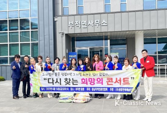 한편, 이번 콘서트를 기획하고 주최한 충남지역언론인협회는 같은 날 부적면사무소를 찾아 필요한 곳에 써달라며 후원물품과 성금 70만 원을 기탁했다. 그러면서 앞으로도 논산시 지역 곳곳을 돌며 주민들을 위해 문화공연을 개최하겠다는 계획을 밝혔다.