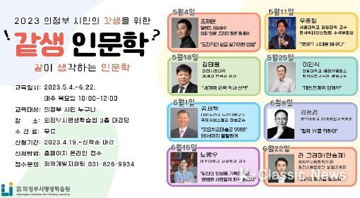 K-Classic News 최지은 기자 | (재)의정부시평생학습원은 오는 19일부터 의정부 시민의 인문학적 소양 함양을 위한 ‘같이 생각하는 인문학 특강’ 수강생을 모집한다.