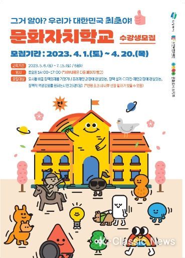 K-Classic News 최지은 기자 | 의정부문화재단은 문화도시 의정부의 법정문화도시 사업으로 '문화자치학교'를 추진한다고 밝혔다. 문화자치학교는 시민이 직접 내 주변으로부터 시작하여 도시의 문제에 대해 고민하고, 문화적으로 해결해나가는 방안을 제안하는 ‘문화자치’의 기반 마련을 하기 위한 첫 단계 사업으로, 시민 정책제안자 양성을 위한 과정을 진행한다.