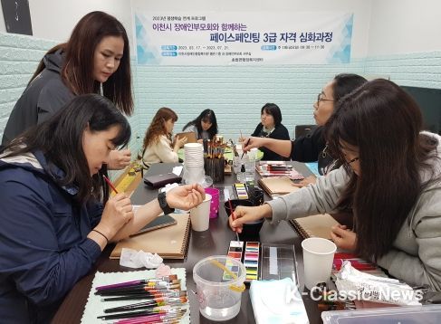 K-Classic News 최지은 기자 | 호법면은 이천시 장애인 부모회와 연계한 페이스페인팅 3급 자격 심화과정 프로그램을 운영 중에 있다고 밝혔다. 이번 프로그램 기획은 소외되는 않는 지속적인 지원을 필요로 하는 이천시 장애인 부모회와 연계하여 배우고 나누는 평생교육의 장을 마련하고자 함에 있다.