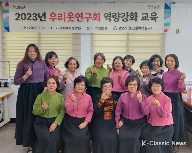 K-Classic News 이호민 기자 | 광양시는 전통 의복 문화 계승발전을 위해 우리옷연구회 회원 16명을 대상으로 2월 27일부터 4월 17일까지 총 8회(매주 월요일)에 걸쳐 생활한복 만들기 교육을 진행했다고 밝혔다.