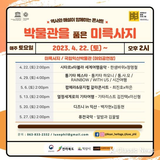 기타 자세한 공연내용은 익산시 문화유산과 공식SNS (@iksan_heritage), 룩스필하모닉 오케스트라 공식SNS (@luxe_phil)를 통해 확인 가능하다.