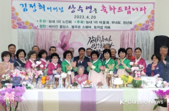 K-Classic News 최지은 기자 | 남양주시 조안면은 20일 능내1리 노인회(노인회장 조기환)에서 100세 장수 어르신을 위한 축하 잔치를 열었다고 밝혔다.