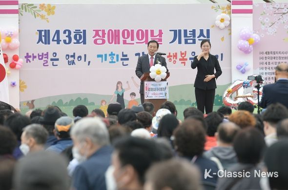 K-Classic News 최지은 기자 | 세종특별자치시가 ㈜세종시장애인단체연합회와 지난 20일 조치원 체육공원에서 ‘제43회 장애인의 날 기념행사’를 개최했다.